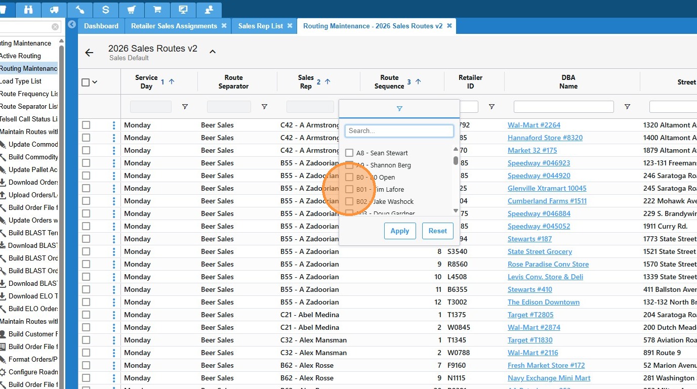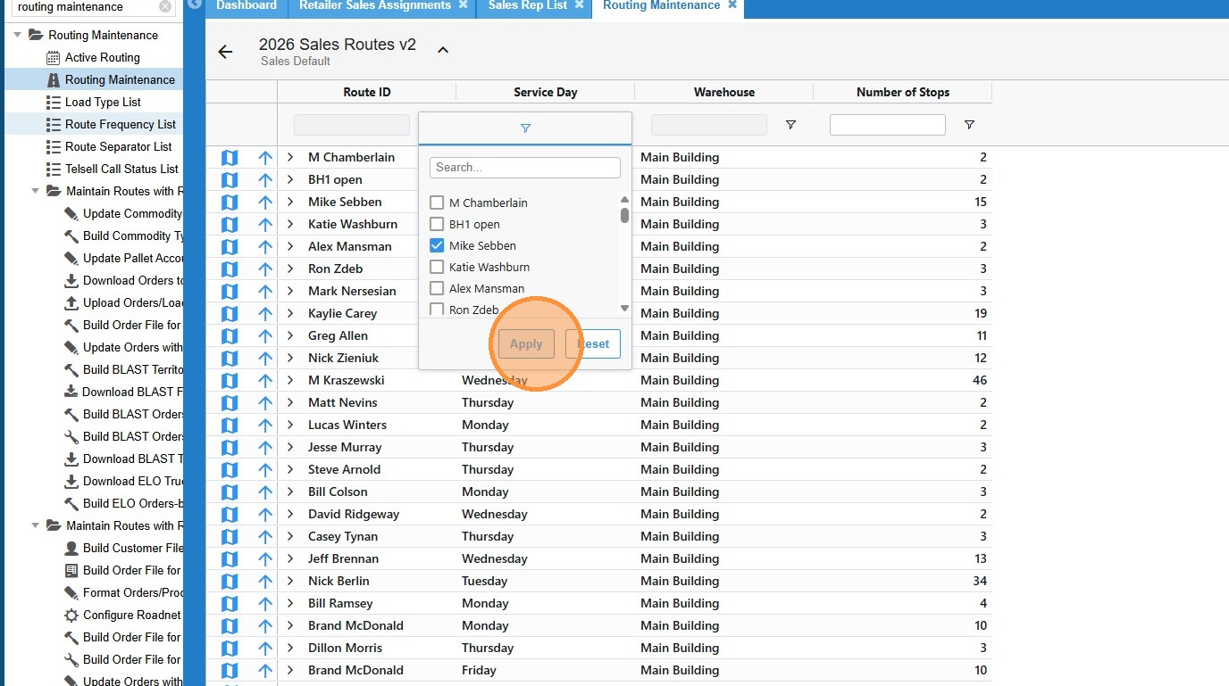 9. Choose the desired rep then click "Apply"